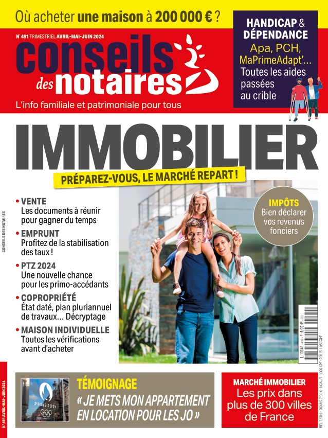 IMMOBILIER Préparez-vous, le marché repart ! > Vente / Les documents à réunir pour gagner du temps > Emprunt / Profitez de la stabilisation des taux ! > PTZ 2024 / Une nouvelle chance pour les primo-accédants > Copropriété / État daté, plan pluriannuel de travaux… > Maison individuelle / Toutes les vérifications avant d’acheter > Impôts / Bien déclarer vos revenus fonciers [...]